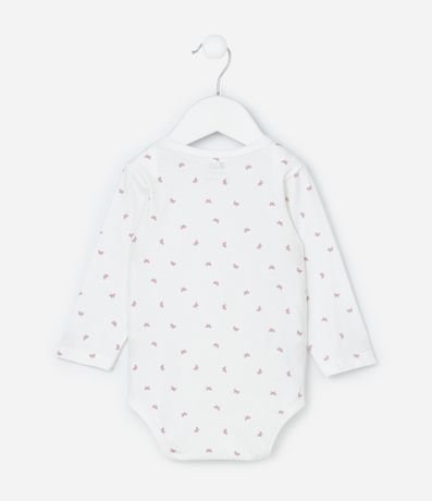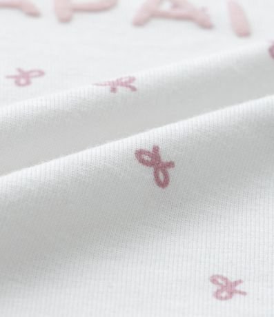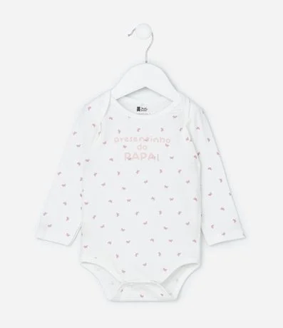 Ref: Body infantil confeccionado em algodão, feito com material e boas práticas ambientais. Possui gola americana, manga longa com lettering "Presentinho do papai" com fundo de lacinhos.