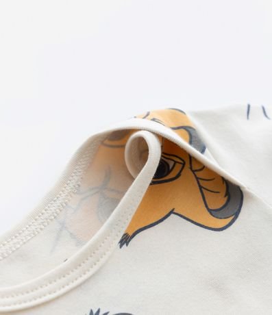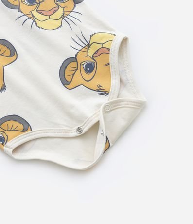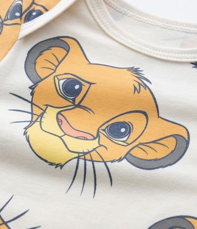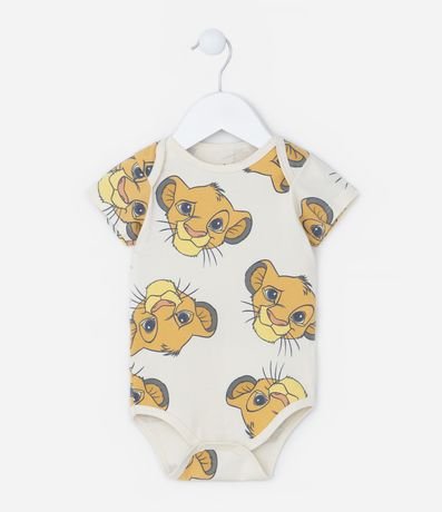 Ref: Body infantil para bebês, confeccionado em malha de algodão mais responsável, com gola redonda americana e mangas curtas. Possui estampa em repetição com rostinho do Simba e fechamento entrepernas com botões.