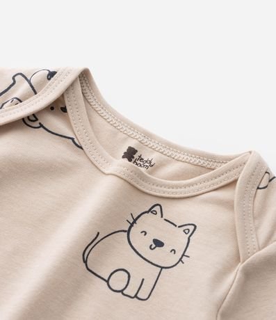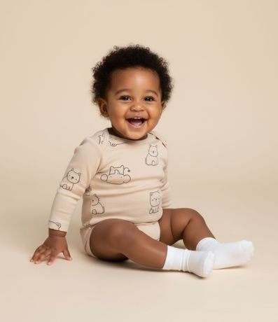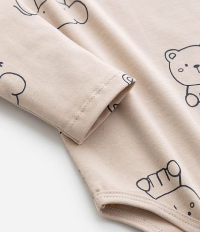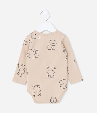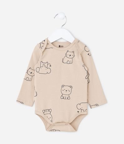 Ref: Body infantil confeccionado em algodão mais sustentável, com gola americana, manga longa e estampa de bichinhos. Possui fechamento no entrepernas.