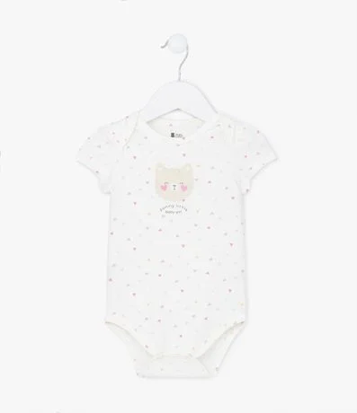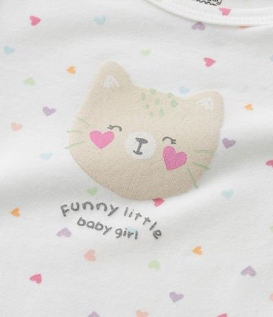 Body Infantil em Algodão com Estampa de Gatinha e Corações - Tam RN a 18 meses