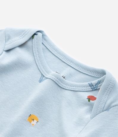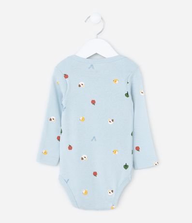 Ref: Body infantil confeccionado em algodão, feito com material e boas práticas ambientais. Possui gola americana, manga longa e estampa de mini ícones diversos.