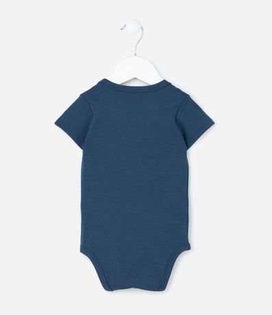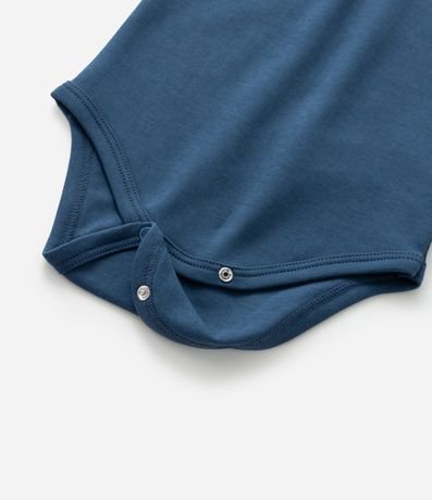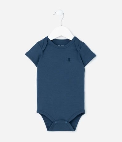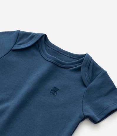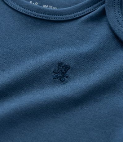 Body infantil confeccionado em algodão peruano, de material mais sustentável, com gola americana, manga curta e bordado no peito de ursinho. Possui fechamento no entrepernas.