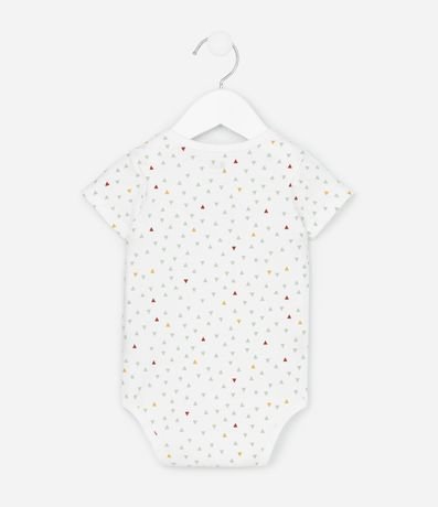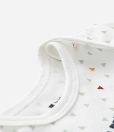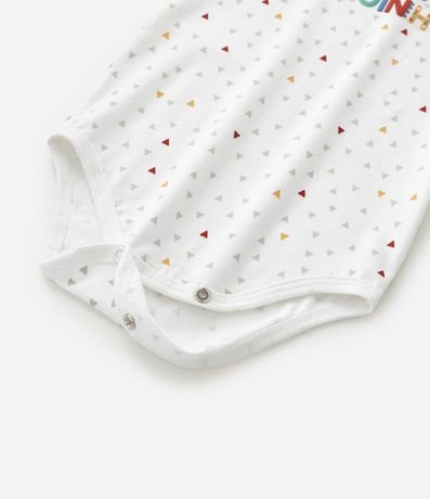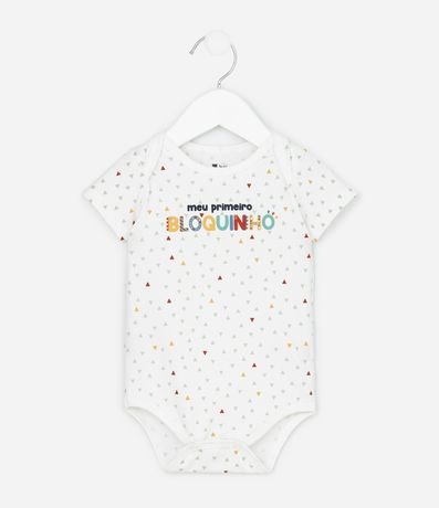 Ref: Body infantil para bebês, confeccionado em malha cotton, com golinha redonda, mangas curtas e fechamento entrepernas. Possui estampa lettering divertida com frase "meu primeiro bloquinho" e triângulos coloridos ao fundo.