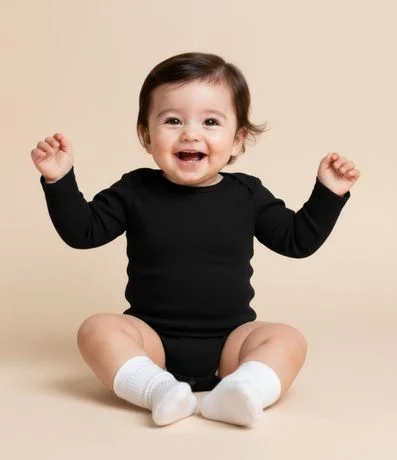 Ref: Body infantil confeccionado em ribana canelada, feito com material e boas práticas ambientais. Possui gola americana, manga longa, sem estampa.