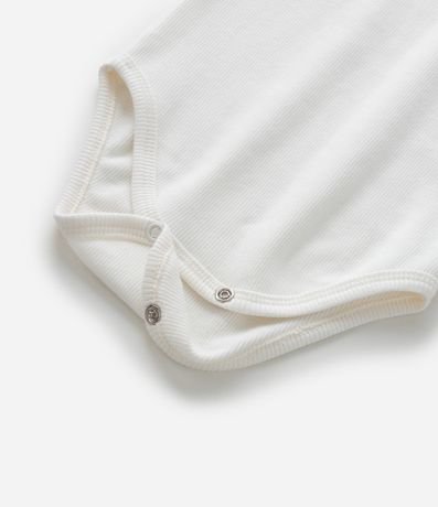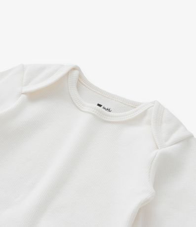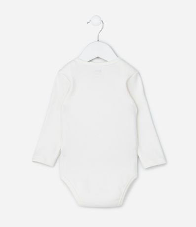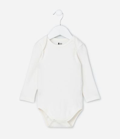 Body infantil confeccionado em ribana canelada, feito com material e boas práticas ambientais. Possui gola americana, manga longa, sem estampa.