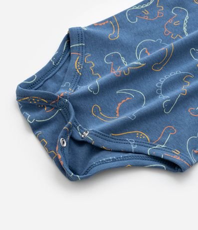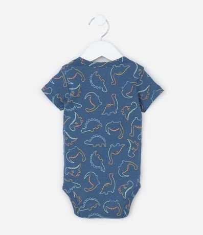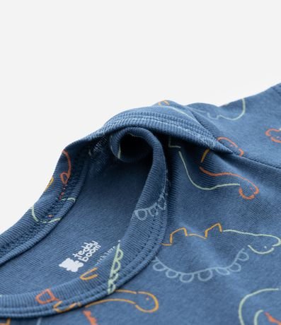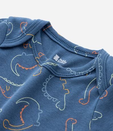 Ref: Body infantil para bebês, com gola americana, mangas curtas e estampa de dinossauros. A peça é confeccionada com boas práticas ambientais e algodão certificado bci.