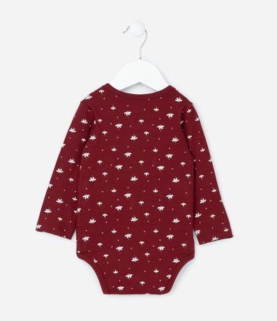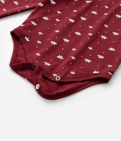 Ref: Body infantil confeccionado em ribana de material mais sustentável. Possui gola americana, manga longa, fechamento no entrepernas e estampa de mini florzinhas.