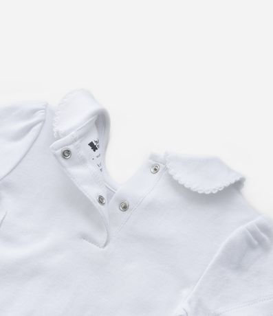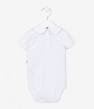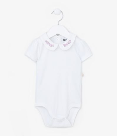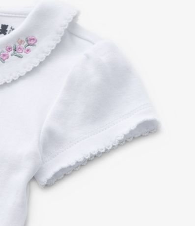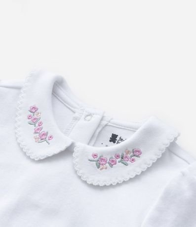 Ref: Body infantil, confeccionado em suedine, com gola boneca, bordado de flores, mangas curtas, sem estampa e, fechamento por botões nas costas e entrepernas.