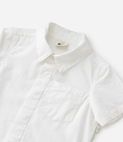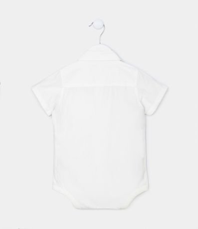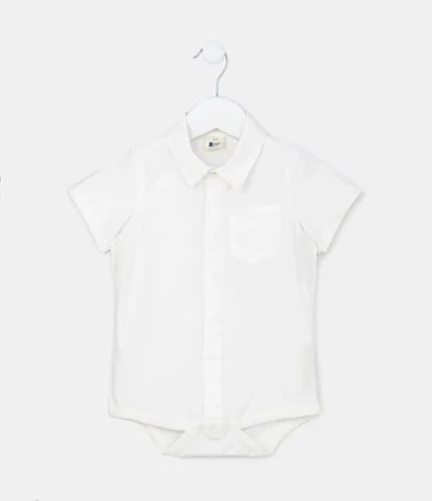 Body infantil confeccionado em tricoline com colarinho na gola, mangas curtas, bolsinho no peito e fechamento entrepernas.