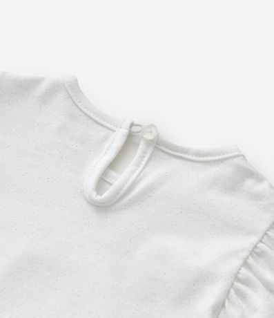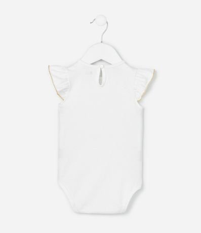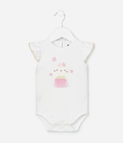 Ref: Body infantil confeccionada em jeans mais sustentável. Possui gola americana, manga curta, com frufru, fechamento no entrepernas e estampa de gatinha com saia de tule.