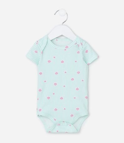 Body Infantil Listrado com Estampa Conchas e Corações – Tam RN a 18 Meses