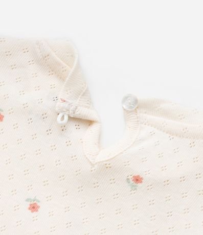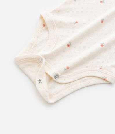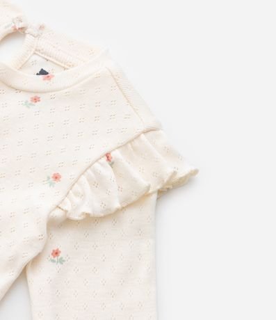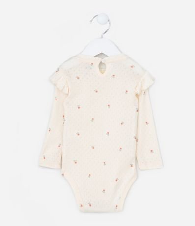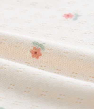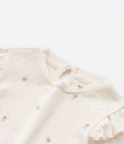 Ref: Body infantil texturizado com estampa floralzinha, babadinhos no ombro e fechamento no entrepernas. Peça super fofa e delicada.
