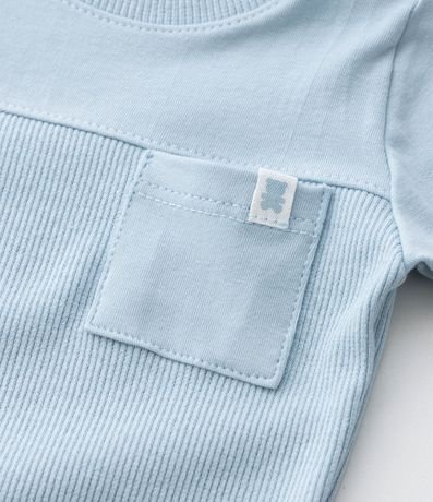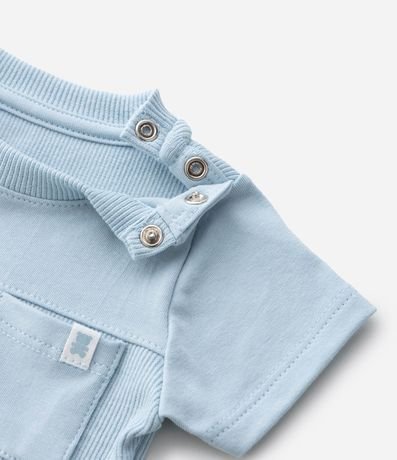 Ref: Body infantil em meia malha com textura delicada e bolsinho frontal. Modelo com gola redonda, mangas curtas e fechamento por botões no ombro e entrepernas para praticidade. Confeccionado em algodão certificado BCI e boas práticas ambientais, garantindo conforto e moda responsável.