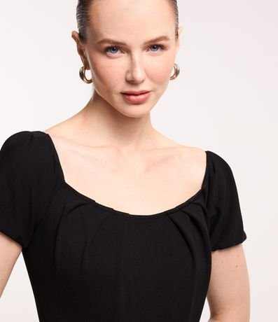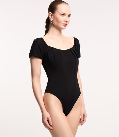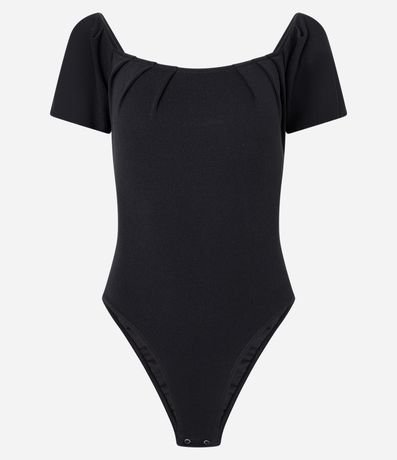 Body Ombro a Ombro em Crepe com Mangas Princesa e Pregas