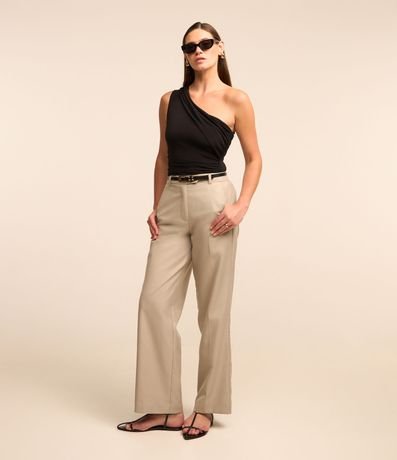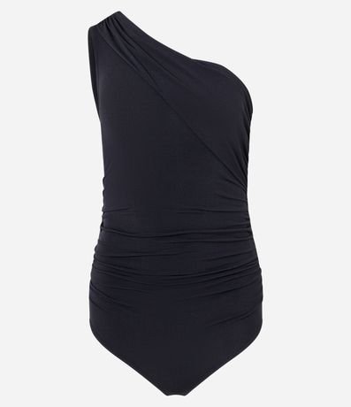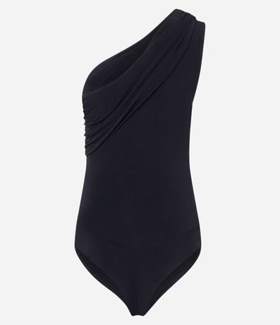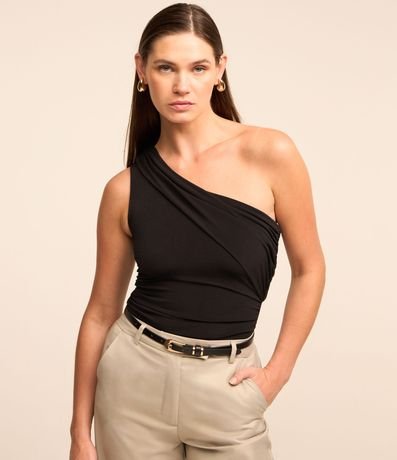 Body sem mangas confeccionado em algodão com decote ombro único e franzidos na malha.
