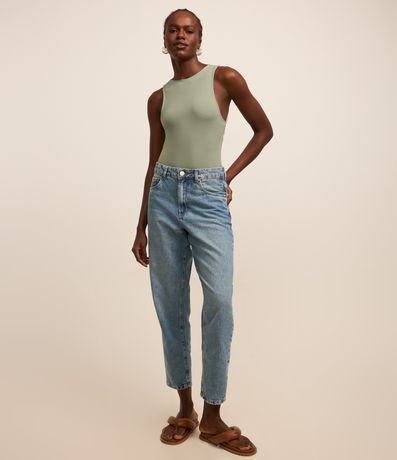 Body Regular em Microfibra com Gola Halter e Abertura nas Costas