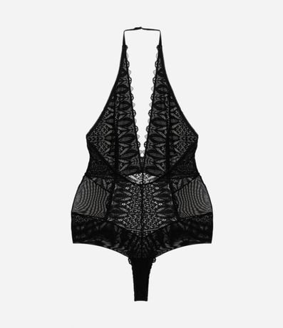 Ref: Body frente única sem bojo, confeccionado em renda floral, com decote v.