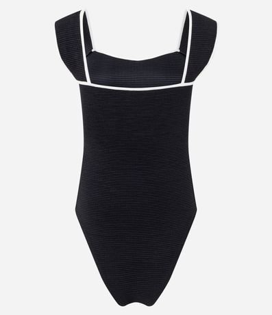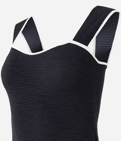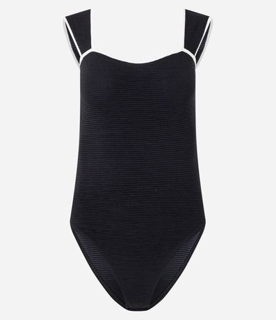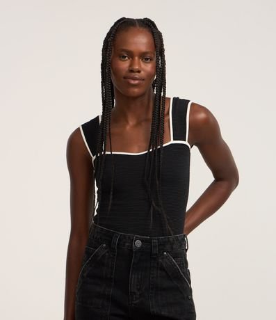 Ref: Body sem mangas e sem bojos, com decote quadrado e alças largas. Peça tem tecido texturizado e vieses contrastantes nas alças e no decote. Produto fabricado através de boas práticas ambientais.