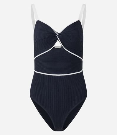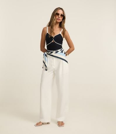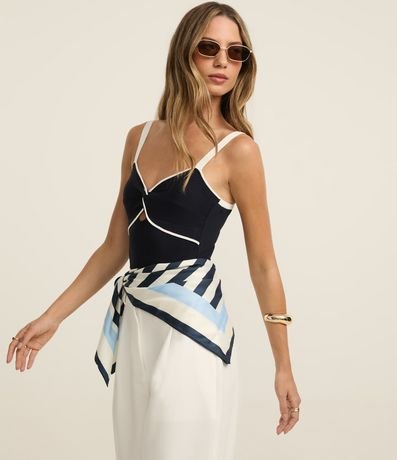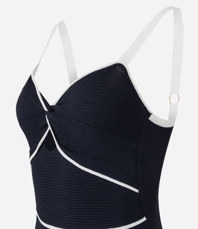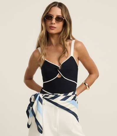 Ref: Body de alcinhas finas reguláveis, confeccionado em tricô, com decote V com torcido, abertura vazado abaixo e vieses contrastantes. Peça com tecido todo texturizado. Este produto possui viscose certificada em sua composição, sendo ambientalmente mais responsável.