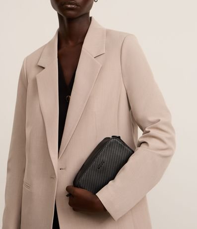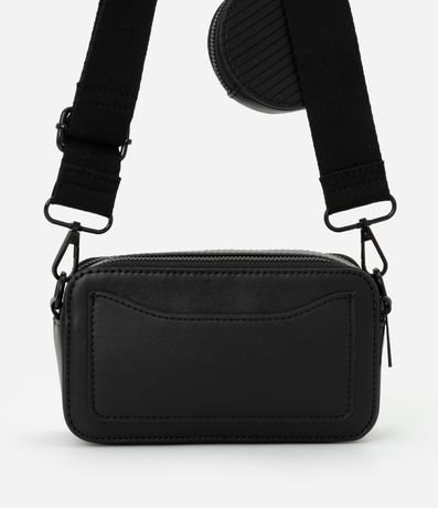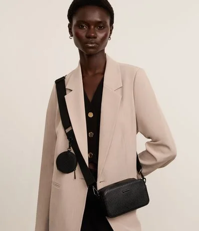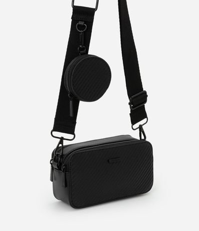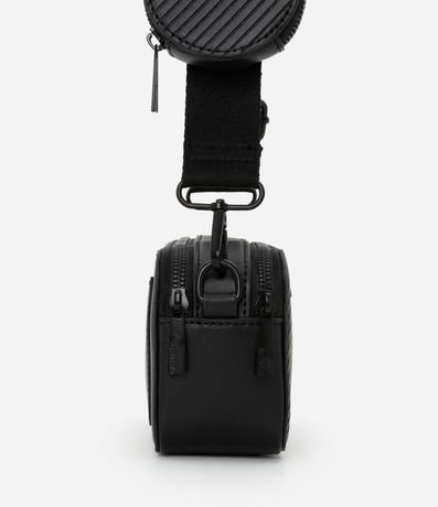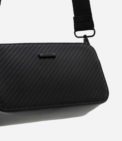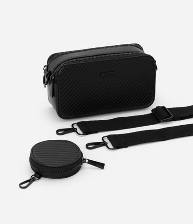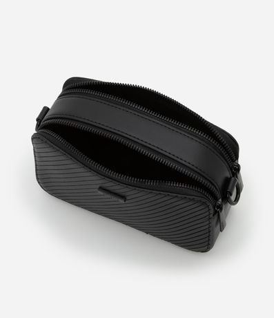 Ref: Bolsa câmera bag, confeccionada em material sintético, com alça transversal de gorgurão, fechamento por zíper e textura de listras diagonais.