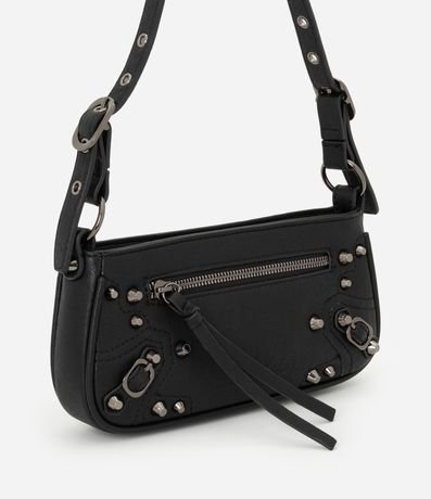 Bolsa Baguete com Detalhes em Metal e Alça Regulável