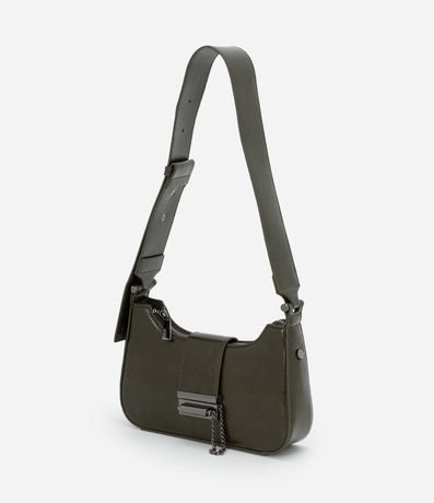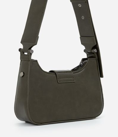 Bolsa feminina pequena em PU, com acabamento glossy, modelo baguete. Possui alça larga, fecho frontal metálico e abertura superior com zíper. O interior é simples e o formato estruturado garante praticidade no uso diário.