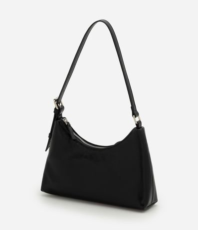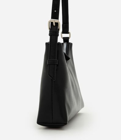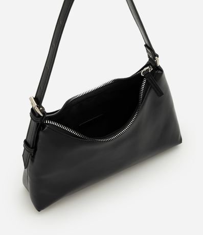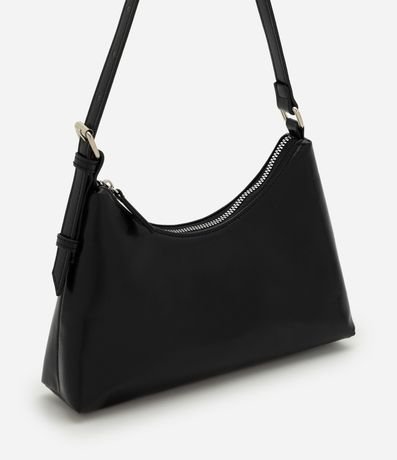 Bolsa feminina tamanho pequeno confeccionada em PU, com formato baguete. Possui alça média ajustável, zíper metálico aparente com puxador e metais em níquel. Interior com espaço para itens essenciais, ideal para compor looks práticos e estilosos.
