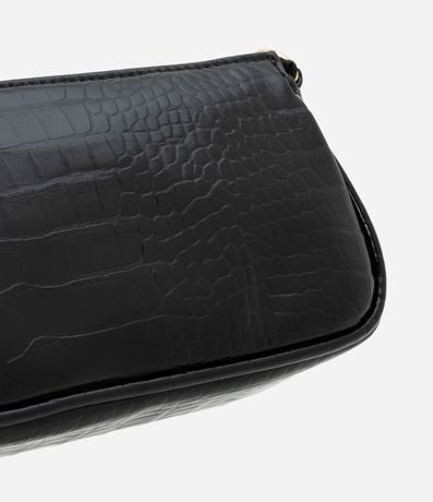 Bolsa Baguete Pequena em PU com Textura Croro com Alça Curta