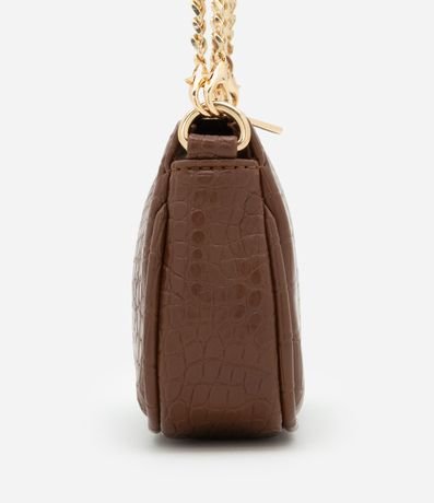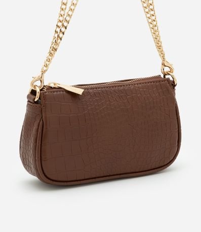 Ref: Bolsa baguete em PU com textura croro com alça curta e longa de corrente,