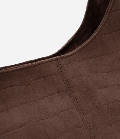 Bolsa Bucket Média em Suede com Textura Croco