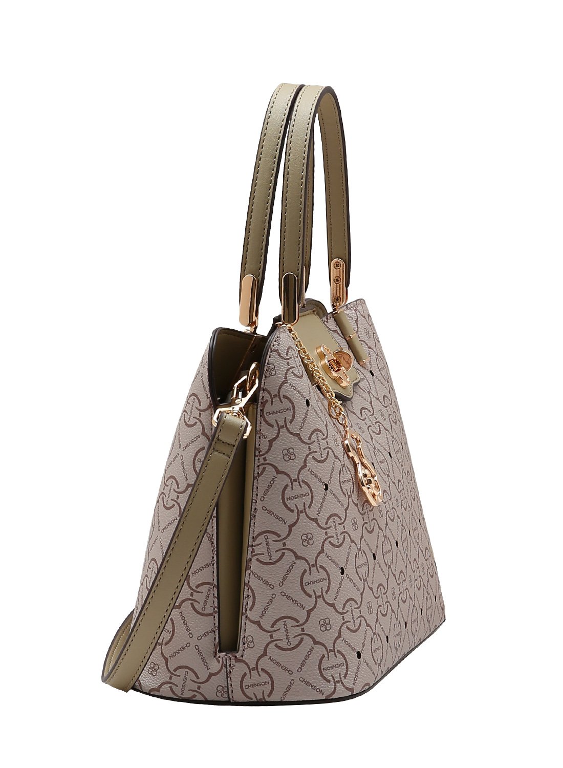 Bolsa Feminina Chenson Original - Classic Cristal - Alca de Mao 3485358A Bolsa Classic Cristal e perfeita para quem busca elegancia e funcionalidade no dia a dia. Com 2 compartimentos espacosos, bolsos internos para pequenos objetos e forro personalizado Chenson, oferece praticidade e organizacao. Possui fechamento seguro com ziper e botao torcao, ferragens douradas, chaveiro exclusivo da marca. Confeccionada em material resistente, e uma bolsa de mao versatil e confortavel, com alca transversal removivel e ajustavel.MEDIDAS EXTERNAS (aproximadas)- Altura: 21 cm- Largura: 33 cm- Comprimento: 14 cmDETALHES DO PRODUTO- Alca de mao: Sim- Alca tiracolo regulavel: Sim- Alca de ombro: Nao- Divisorias: 2- Bolsos: 3 (2 internos com ziper, 1 interno para pequenos objetos)- Metais: Dourados- Material: Poliuretano impermeavel- Peso: 0,730g- Cor: Natural - Marca: ChensonDIFERENCIAIS- Produto 100% original Chenson- Impermeavel e facil de limpar- Espaco interno bem distribuido- Estilo versatil: casual ou social- Chaveiro de ursinho inclusoGARANTIA- Garantia de fabrica: 3 meses contra defeitos de fabricacao (a partir da data da compra)- Garantia da Guanacos de revisao e cuidados na hora de embalar e enviar para voceCOMPRA SEGURA- Envio imediato- Pecas a pronta entrega