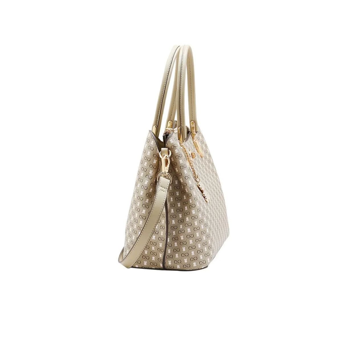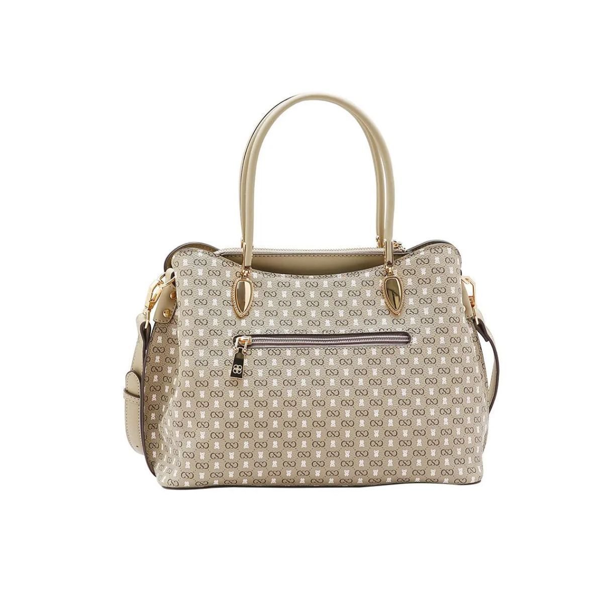 A Bolsa Chenson Monograma Baby Urso e perfeita para quem busca sofisticacao no dia a dia. Confeccionada em material resistente com estampa de monograma e detalhe metalico de ursinho, traz charme e autenticidade. Possui alcas de mao fixas e alca transversal ajustavel e removivel. O interior conta com tres divisoes espacosas, sendo uma com ziper, ideal para manter tudo bem organizado. O fechamento principal e em ziper com acabamento refinado. Detalhes em ferragens douradas e base estruturada garantem estilo e praticidade. Ideal para compor looks casuais e sociais com elegancia. Marca: Chenson Referencia: 3485367 Tamanho: Unico Material: Sintetico Comprimento: 38cm Altura: 31cm Largura: 18cm
