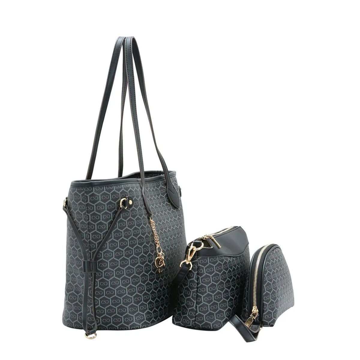 dia a dia. Composto por 3 pecas - bolsa grande, bolsa pequena e necessaire -, este conjunto e perfeito para diferentes ocasioes.