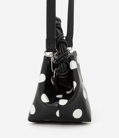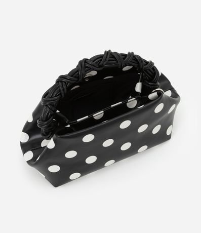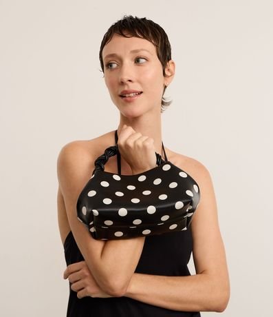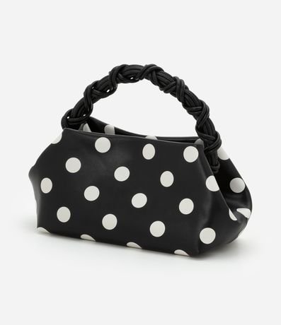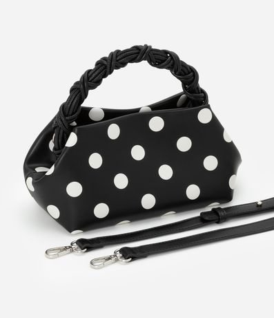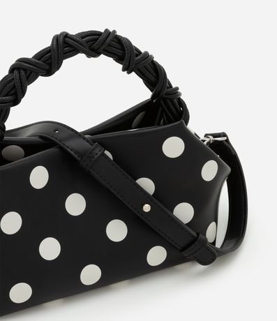 Ref: Bolsa de mão, confeccionada em material sintético, com alça de mão trançada e alça longa de ombro removível. Peça com estampa poá.