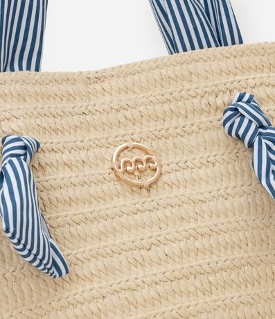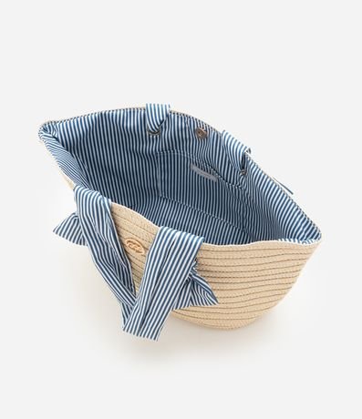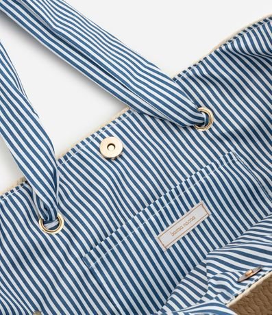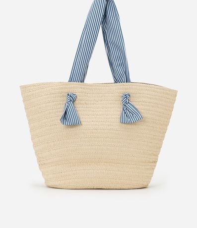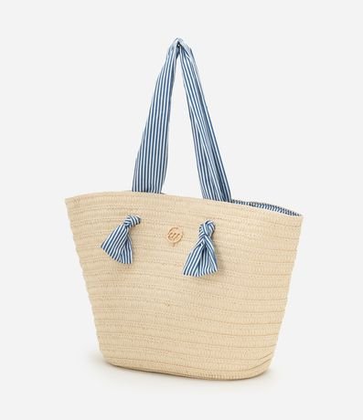 Ref: Bolsa de praia em palha com alças e forro de tecido listrado.