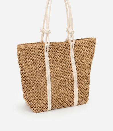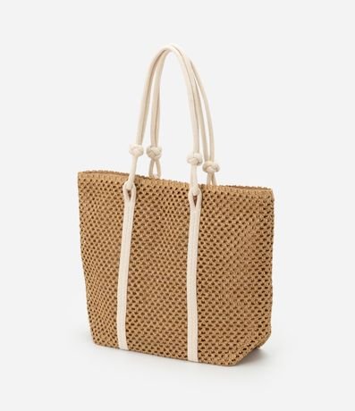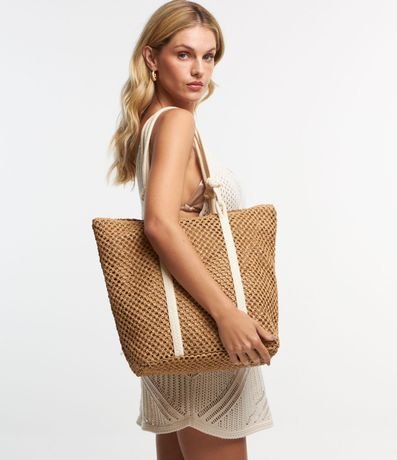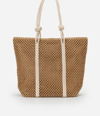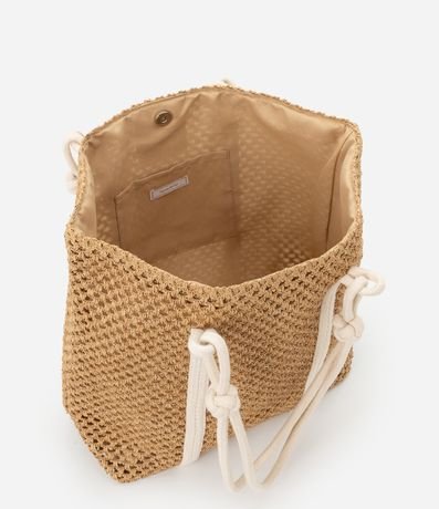 Ref: Bolsa de praia, grande, confeccionada em papel com fechamento por pressão, bolsinho interno e alças de corda com detalhes em nós.