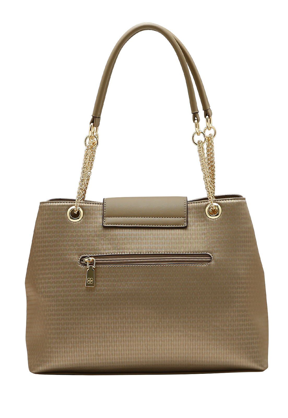 A Bolsa Feminina Chenson Logo Chic é a escolha ideal para quem busca elegância, praticidade e sofisticação no dia a dia. Seu design moderno destaca o logo metálico Chenson aplicado na aba frontal, que agrega charme e identidade à peça. Confeccionada em material sintético de alta qualidade, possui acabamento refinado e estrutura firme, garantindo durabilidade e ótimo caimento. Conta com alça de ombro confortável, com detalhe em corrente metálica dourada, que valoriza o visual e proporciona um toque fashion. O fechamento é feito por zíper e aba com botão magnético, oferecendo segurança e praticidade. Internamente, apresenta amplo espaço com divisórias e bolsos organizadores, ideais para acomodar objetos pessoais como carteira, celular e itens essenciais, além de bolso externo com zíper para fácil acesso. Versátil, é perfeita para o trabalho, compromissos sociais ou uso casual.