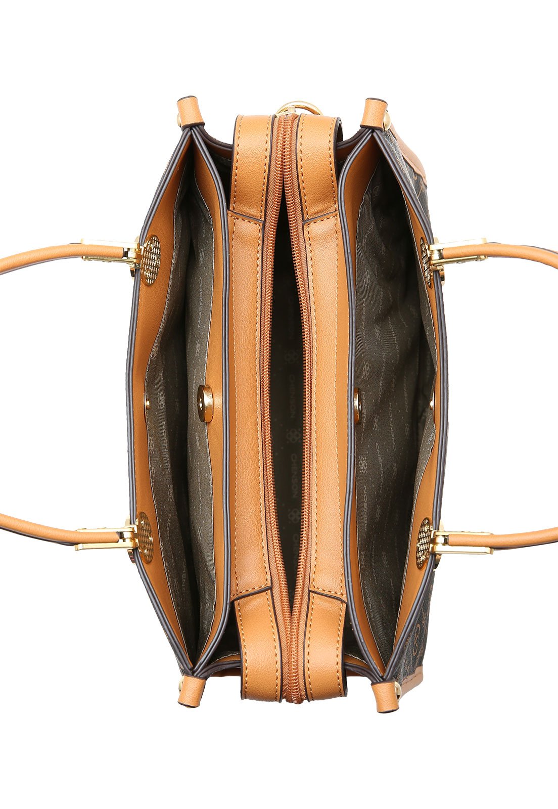 A Bolsa Feminina Chenson Mão Monograma Elegance 3485495 é perfeita para quem valoriza elegância, organização e versatilidade no dia a dia. Com design sofisticado e estampa monograma exclusiva, possui acabamento refinado em material sintético de alta qualidade. Conta com dois compartimentos principais com fechamento em zíper, proporcionando melhor divisão interna e praticidade na organização. Possui bolso externo traseiro com zíper para acesso rápido a itens essenciais. As alças de mão estruturadas garantem conforto e estilo, além de alça transversal removível e ajustável que permite diferentes formas de uso. Acompanha delicado chaveiro espelho removível, que agrega charme e funcionalidade. Ideal para trabalho, compromissos diários, eventos ou passeios, unindo praticidade e sofisticação.