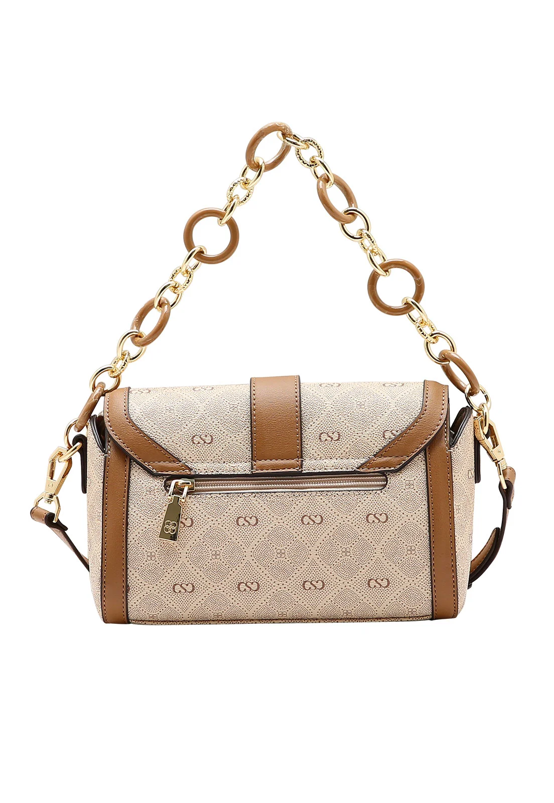 A Bolsa Feminina Chenson Monograma Pontilhado combina sofisticação e funcionalidade em um design compacto e elegante. Confeccionada em material sintético de alta qualidade, apresenta estampa monograma pontilhada que valoriza o visual e garante um toque moderno. O modelo conta com alça de mão em corrente com detalhes resinados e alça transversal ajustável e removível, oferecendo versatilidade para diferentes ocasiões. O fechamento principal é feito por aba com fecho metálico, proporcionando segurança e charme. Internamente, possui compartimento principal com divisória central com zíper, além de bolsos internos que facilitam a organização de pequenos objetos. O chaveiro metálico decorativo agrega exclusividade e identidade à peça, tornando-a ideal para o dia a dia ou eventos especiais.