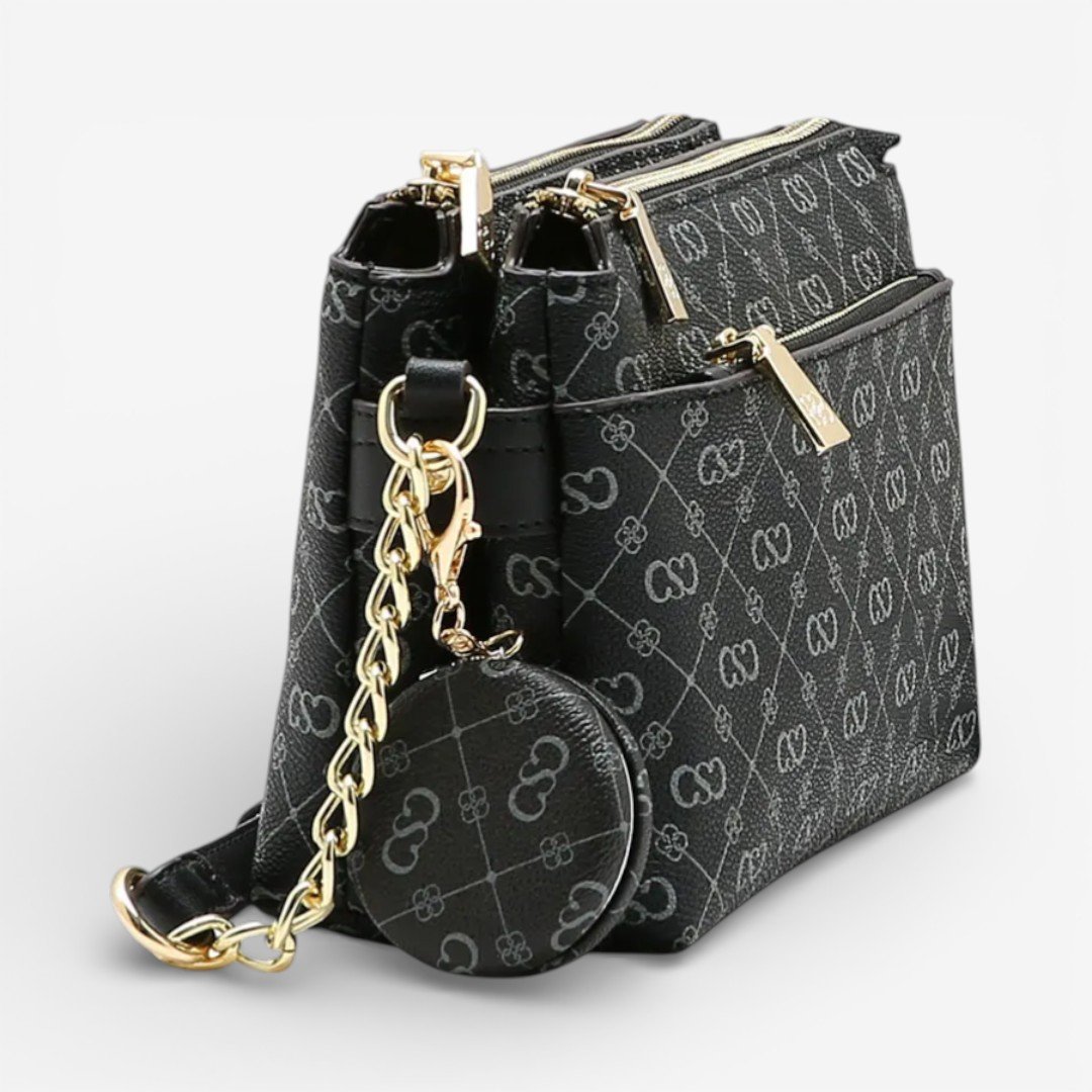 A Bolsa Feminina Chenson Transversal Monograma Elegance é aquele toque fashion que eleva qualquer produção. Com estampa monograma exclusiva e ferragens metálicas que destacam o design, une sofisticação e praticidade na medida certa. O fechamento em zíper garante segurança e o interior com divisórias facilita a organização da rotina. A alça transversal ajustável traz conforto para usar do trabalho ao happy hour. Combine com jeans, alfaiataria, vestidos ou conjuntos modernos e crie looks urbanos cheios de personalidade.Estilo do produto casual sofisticado