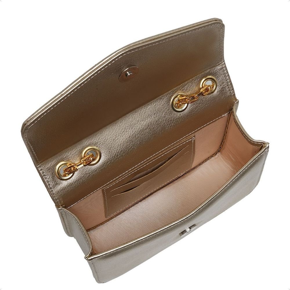 Com um design atemporal na cor dourado e detalhes em corrente, ela é a escolha perfeita para quem busca elegância desde um jantar romântico até um evento social sofisticado.