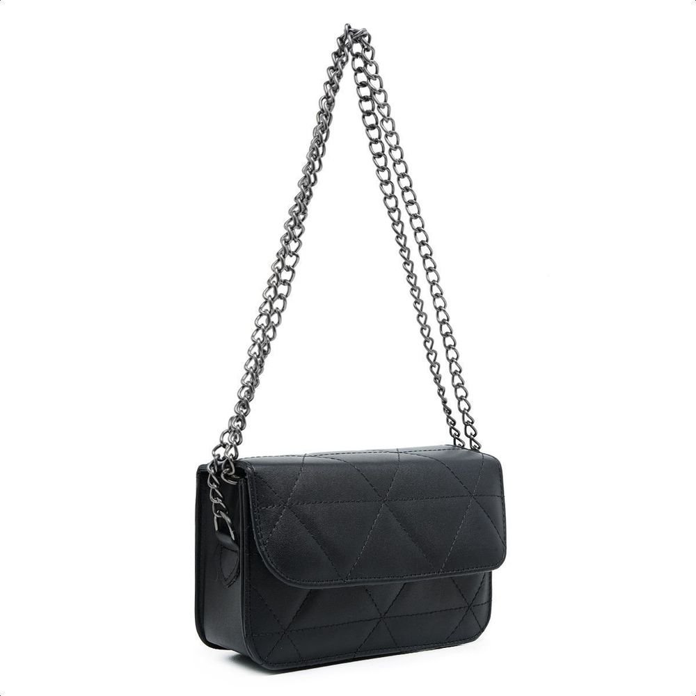 Bolsa Feminina Preta Pequena Bordada Triangulo Alça Corrente Grafite De Ombro Clutch Carteira Mão CM SHOES