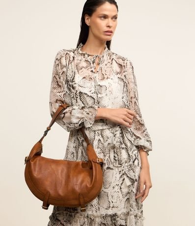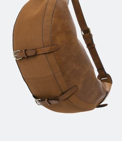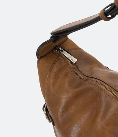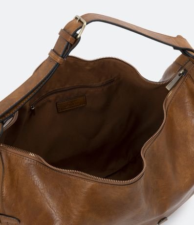 Ref: Bolsa grande feminina, confeccionada em PU, com fechamento por zíper, alça para carregamento e detalhes em fivela na alça e laterais.