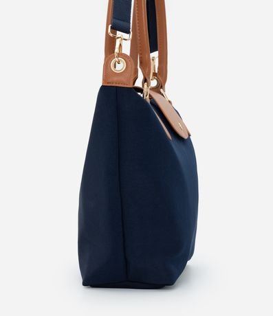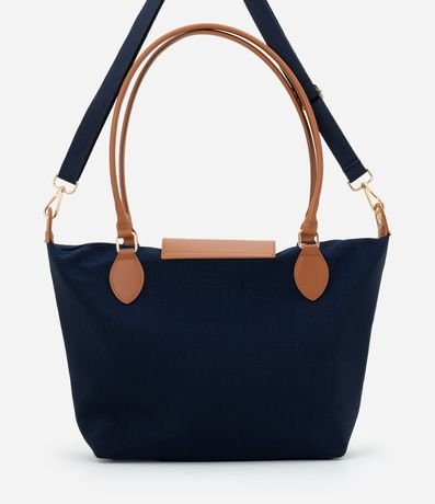Bolsa feminina estruturada em poliéster mais sustentável. Possui formato amplo, lapela rígida com botão metálico, zíper interno, alças em PU e alça longa extra removível.
