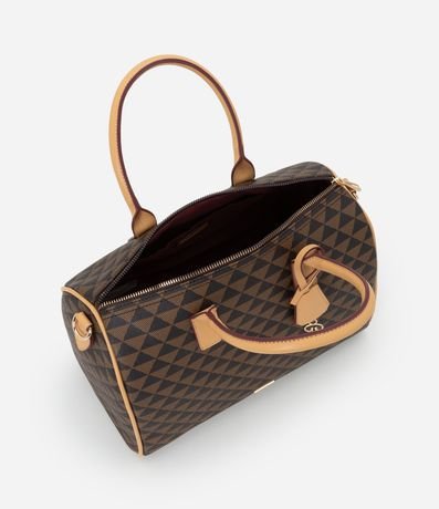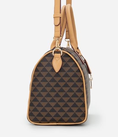 Bolsa Grande em PU com Alça de Mão e Estampa Triângulos