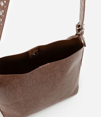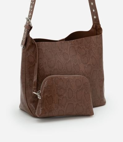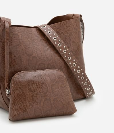 Ref: Bolsa grande feminina, confeccionada em PU, com alças detalhas em ilhoses e carteirinha extra. A peça também conta com estampa cobra.