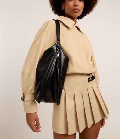 Ref: Bolsa feminina confeccionada em material sintético, com fechamento de zíper, alça de mão fixa, alça longa removível. Peça com expansão lateral que permite maior espaço interno para o modelo, ajuste com zíper lateral.