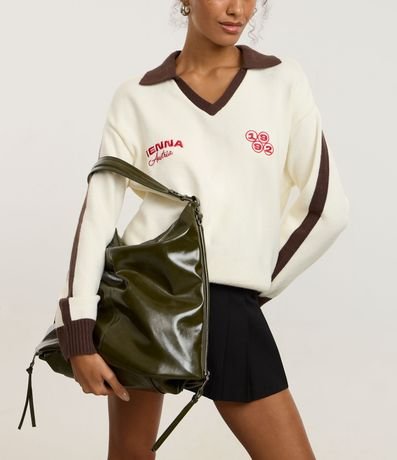 Ref: Bolsa feminina confeccionada em material sintético, com fechamento de zíper, alça de mão fixa, alça longa removível. Peça com expansão lateral que permite maior espaço interno para o modelo, ajuste com zíper lateral.
