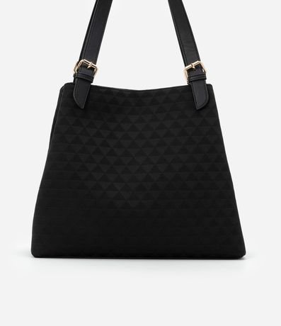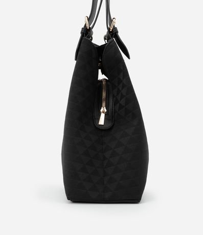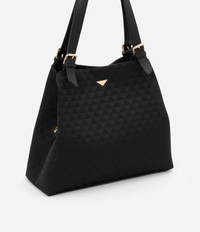 Ref: Bolsa feminina Hobo em jacquard com fechamento por botão de pressão, alça de mão com fivela, divisórias internas com zíper, textura embossed e estampa triangulo.