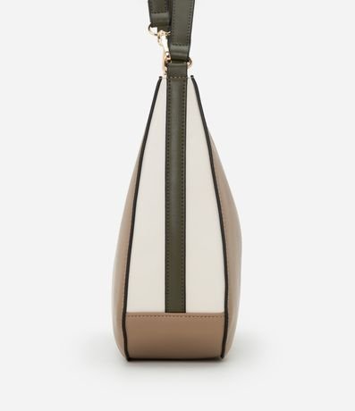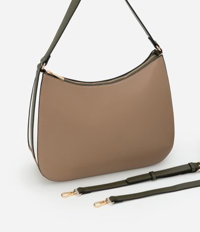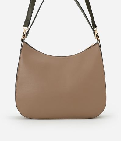 Bolsa feminina no modelo Hobo no modelo média, com fechamento por zíper único, alças duplas, sendo uma de mão média e uma alça longa removível. Peça contém detalhes contrastantes na lateral que promovem um charme a mais para o look.